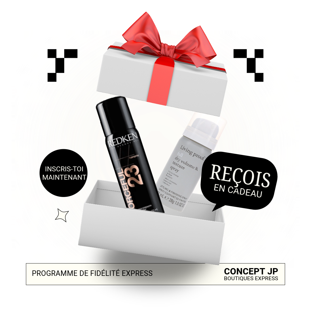 Inscris-toi au programme de fidélité boutique Express et reçois en cadeau un Quick Blowout de Redken et un spray Full Dry Volume de Living proof, en format voyage.