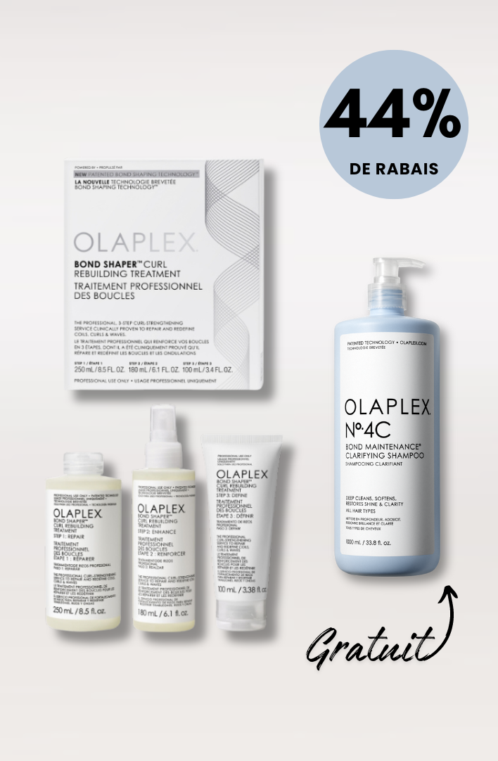 Achetez le kit complet OLAPLEX Bond Shaper Curl et recevez un shampooing clarifiant gratuit pour un soin complet de vos boucles.