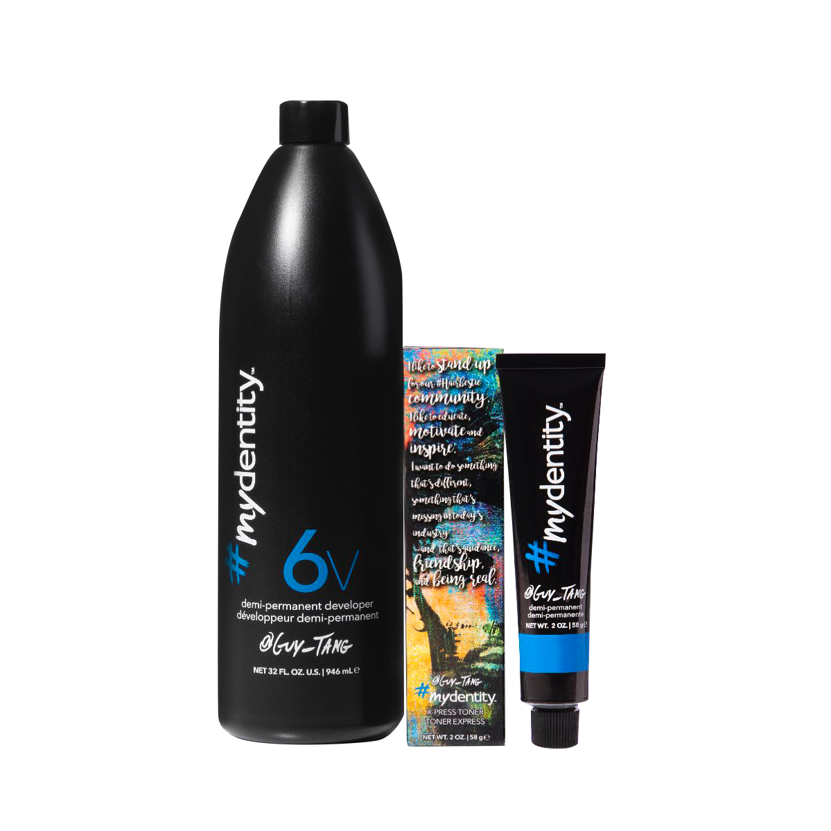 Pour une couverture encore plus opaque, mélangez une part de #mydentity @Guy_Tang Demi-Permanent Color Crème avec une part de #Mydentity @Guy_Tang Crème Developer 6V selon un ratio de 1:1.
